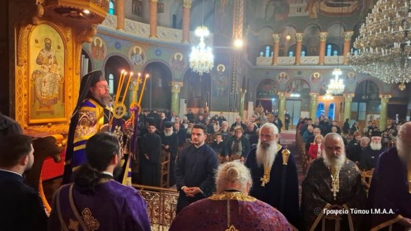 Στον Ιερό Ναό του Αγίου Αθανασίου στην Ιερά Πόλη του Μεσολογγίου χοροστάτησε στην Ακολουθία του Κατανυκτικού Εσπερινού, το απόγευμα της Κυριακής Γ’ Νηστειών, 23 Μαρτίου 2025, ο Σεβασμιώτατος Μητροπολίτης Αιτωλίας και Ακαρνανίας κ. Δαμασκηνός.