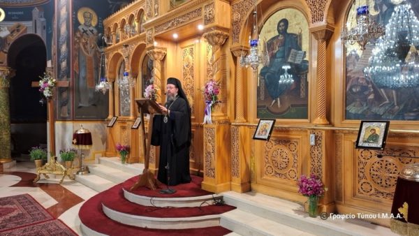 Τον θείο λόγο κήρυξε ο Πανοσιολογιώτατος Αρχιμανδρίτης Ευσέβιος Σπανός, Καθηγούμενος της Ιεράς Μονής Αγίας Λαύρας Καλαβρύτων, ο οποίος ανέπτυξε το θέμα: «Σταυρέ τοῦ Χριστοῦ σῶσον ἡμᾶς τῇ δυνάμει Σου».