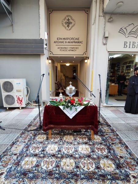 Την Ακολουθία του Αγιασμού τέλεσε ο Σεβασμιώτατος Μητροπολίτης Αιτωλίας και Ακαρνανίας κ. Δαμασκηνός, παρουσία του Ιερού Κλήρου, του Δημάρχου Αγρινίου κ. Γεωργίου Παπαναστασίου, των τοπικών δημοτικών και στρατιωτικών αρχών και του λαού.