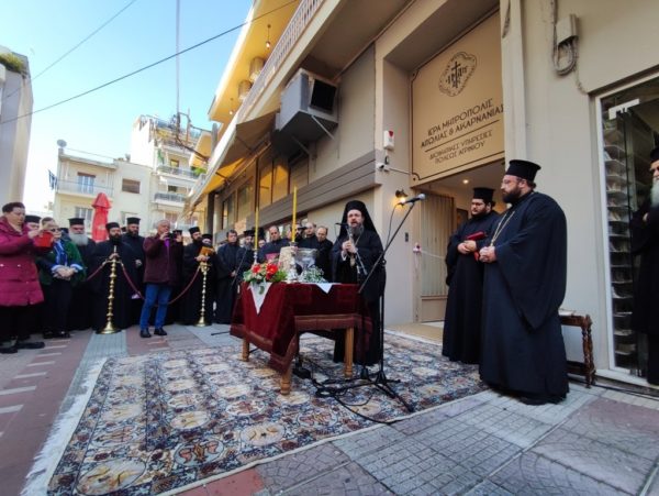 Ο Σεβασμιώτατος ευχαρίστησε τον Πρόεδρο, πρωτοπρ. Χρήστο Παπαχρήστο και τα μέλη του Εκκλησιαστικού Συμβουλίου του Ιερού Μητροπολιτικού Ναού για την παραχώρηση του κτιρίου, καθώς και όσους εργάστηκαν για την ριζική ανακαίνισή του. Ιδιαιτέρως ευχαρίστησε τον Καθηγούμενο της Ιεράς Μονής Εισοδίων της Θεοτόκου Μυρτιάς Τριχωνίδος, αρχιμανδρίτη Ιωσήφ Ζωγράφο και τον Αρχιερατικό Επίτροπο Παραβόλας, πρωτοπρεσβύτερο Σπυρίδωνα Ιωάννου για την κοπιώδη και αποτελεσματική εργασία τους, κατά την ανακαίνιση του χώρου.