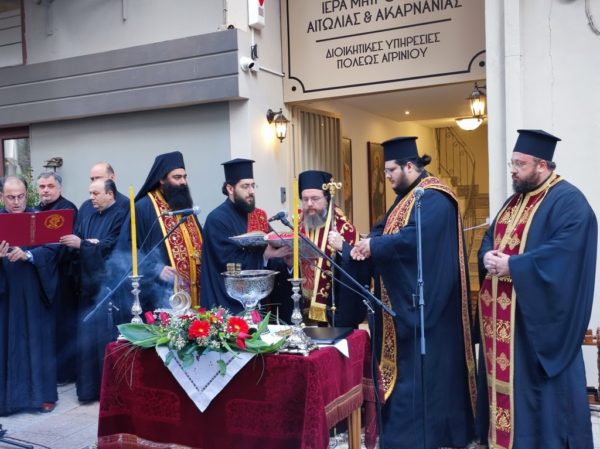 Την Ακολουθία του Αγιασμού τέλεσε ο Σεβασμιώτατος Μητροπολίτης Αιτωλίας και Ακαρνανίας κ. Δαμασκηνός, παρουσία του Ιερού Κλήρου, του Δημάρχου Αγρινίου κ. Γεωργίου Παπαναστασίου, των τοπικών δημοτικών και στρατιωτικών αρχών και του λαού.
