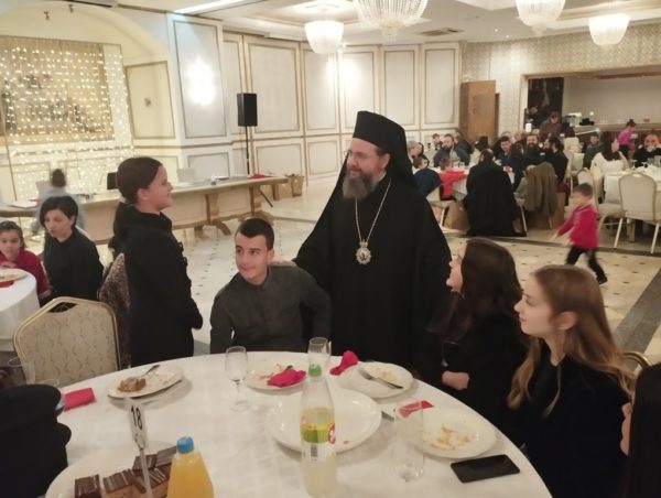 Στην εκδήλωση, που πραγματοποιήθηκε για πρώτη φορά, συμμετείχαν οι ιερατικές οικογένειες και οι οικογένειες των υπαλλήλων της Ιεράς Μητροπόλεως. Ο Σεβασμιώτατος τους υποδέχθηκε όλους με πολλή χαρά και αντάλλαξε εορταστικές ευχές. Μετά την ευλογία της βασιλόπιτας προσέφερε δώρα σε όλα τα παιδιά, τα οποία εξέφρασαν τη χαρά και τον ενθουσιασμό τους και ευχαρίστησαν τον Ποιμενάρχη τους.
