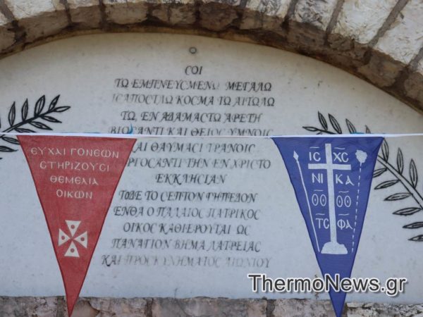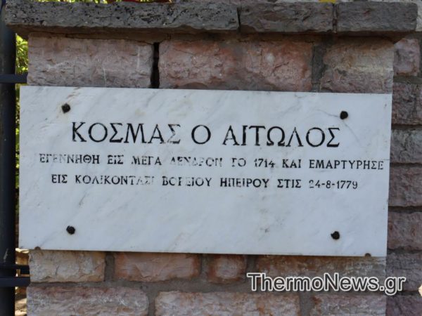 Μετά την ολοκλήρωση της Θείας Λειτουργίας, ο Σεβασμιώτατος κ. Δαμασκηνός, με τη συνοδεία του Πανοσιολογιοτάτου Πρωτοσύγκελλου της Ι.Μ. Αιτωλίας και Ακαρνανίας π. Θεόκλητου Ράπτη, σεβαστών πατέρων ενοριών της περιοχής και του Δημάρχου κ. Σπύρου Κωνσταντάρα, μετέβη στον χώρο γέννησης του Αγίου Κοσμά στο Μέγα Δένδρο.