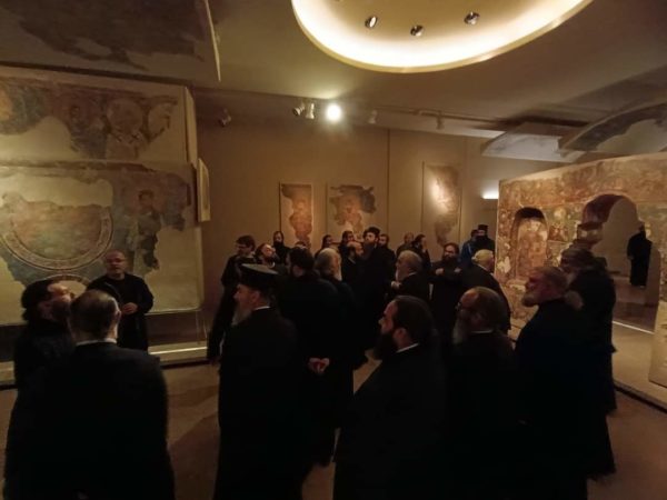 Πρώτο σταθμό της εξόρμησης, αποτέλεσε η ξενάγηση στο Βυζαντινό και Χριστιανικό Μουσείο Αθηνών. Οι ιερείς, είχαν την ευκαιρία να θαυμάσουν τα εκθέματα τα οποία καλύπτουν χρονολογικά από τον 1ο έως και τον 19ο μ.Χ. αιώνα. Αντικείμενα καθημερινής χρήσης, λατρευτικά αντικείμενα και σκεύη, καθώς και εικόνες. Από τους υπευθύνους του Μουσείου ενημερώθηκαν για τον τρόπο συντήρησης των κειμηλίων και την αποκατάστασή τους. Ιδιαίτερα χαρακτηριστική ήταν η περιγραφή της διάσωσης των βυζαντινών τοιχογραφιών.