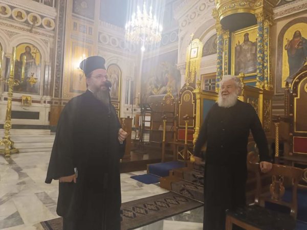 Το απόγευμα της ίδια ημέρας, ο Σεβασμιώτατος και οι κληρικοί, επισκέφθηκαν τον Ιερό Καθεδρικό Ναό των Αθηνών. Ο Αιδεσιμολογιώτατος Πρωτοπρεσβύτερος Δημήτριος Νίκου, καλωσόρισε εγκάρδια τον Σεβασμιώτατο και τους πατέρες. Αναφέρθηκε κι εκείνος στην ιστορία του Μητροπολιτικού Ναού, που είναι άρρηκτα συνδεδεμένος με τη δημιουργία του Νέου Ελληνικού Κράτους.