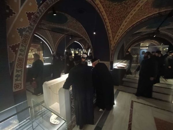 Πρώτο σταθμό της εξόρμησης, αποτέλεσε η ξενάγηση στο Βυζαντινό και Χριστιανικό Μουσείο Αθηνών. Οι ιερείς, είχαν την ευκαιρία να θαυμάσουν τα εκθέματα τα οποία καλύπτουν χρονολογικά από τον 1ο έως και τον 19ο μ.Χ. αιώνα. Αντικείμενα καθημερινής χρήσης, λατρευτικά αντικείμενα και σκεύη, καθώς και εικόνες. Από τους υπευθύνους του Μουσείου ενημερώθηκαν για τον τρόπο συντήρησης των κειμηλίων και την αποκατάστασή τους. Ιδιαίτερα χαρακτηριστική ήταν η περιγραφή της διάσωσης των βυζαντινών τοιχογραφιών.
