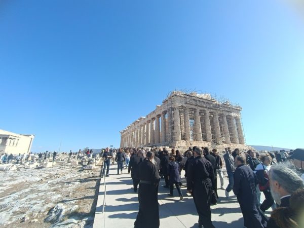 Την Τρίτη 5 Νοεμβρίου ο Σεβασμιώτατος και οι Κληρικοί μετέβησαν στο Μουσείο της Ακρόπολης, θαύμασαν τα ευρήματα της αρχαιολογικής σκαπάνης και την απαράμιλλη τεχνική των αρχαίων Ελλήνων στην κατασκευή αγαλμάτων, ενώ με συγκίνηση στάθηκαν στις κενές θέσεις που αναμένουν να φιλοξενήσουν τα κλαπέντα μάρμαρα όταν επιστρέψουν στην Ελλάδα. Στη συνέχεια πραγματοποιήθηκε η ανάβαση στον ιστορικό βράχο της Ακροπόλεως, όπου ξεναγήθηκαν στο Ερέχθειο, στο Ηρώδειο και τα υπόλοιπα αρχαιολογικά μνημεία.