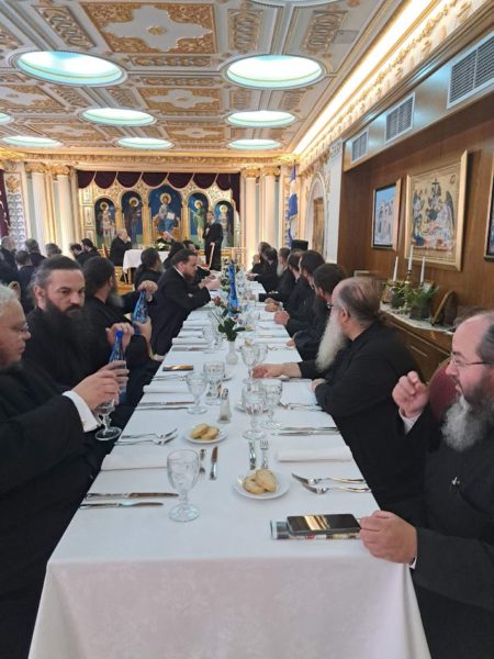 Η επίσκεψη ολοκληρώθηκε, με την παράθεση δείπνου στο Πνευματικό Κέντρο και την ανταλλαγή δώρων. Κατά τη διάρκεια του δείπνου, ο Σεβασμιώτατος Ποιμενάρχης, ευχαρίστησε με θερμά λόγια τον π. Ιωάννη για τη φιλοξενία και ευχήθηκε για την επιτυχή συνέχιση του πολύπλευρού έργου του.