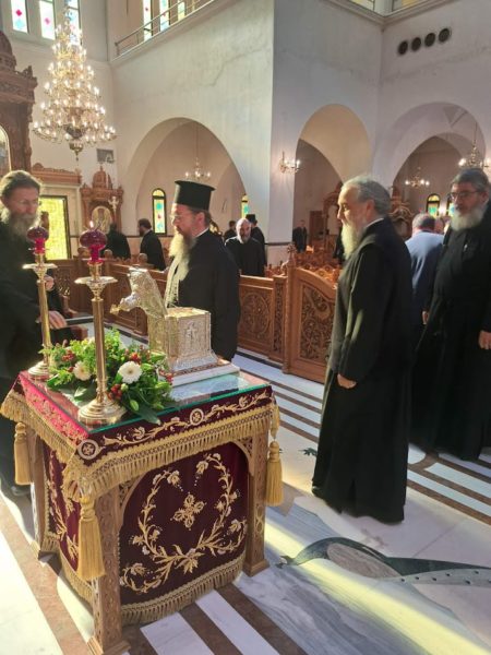 Το μεσημέρι της Τρίτης πραγματοποιήθηκε προσκύνημα στον ενοριακό Ιερό Ναό Αγίου Δημητρίου στο Μπραχάμι. Ο Προϊστάμενος του Ναού Αιδεσιμολογιώτατος Πρωτοπρεσβύτερος Ματθαίος Χάλαρης υποδέχθη τον Σεβασμιώτατο και τους κληρικούς και προσέφερε προς προσκύνησιν τεμάχιο λειψάνων του Αγίου Δημητρίου.