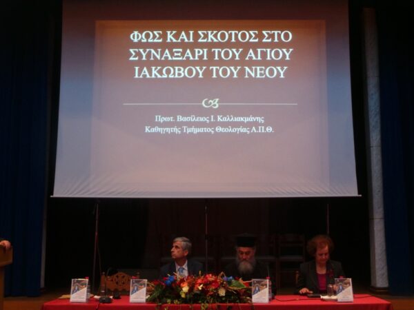 Η πρώτη είχε θέμα: «Φως και Σκότος στο Συναξάρι του Αγίου Ιακώβου», με εισηγητή τον πρωτοπρεσβύτερο π. Βασίλειο Καλλιακμάνη, Καθηγητή της Θεολογικής Σχολής του Πανεπιστημίου Θεσ/νίκης.
