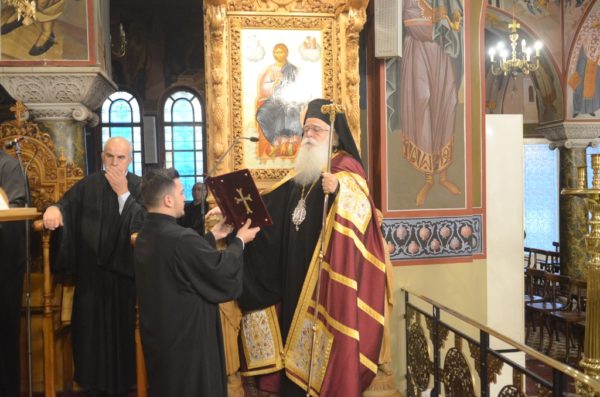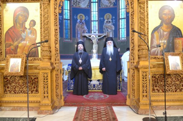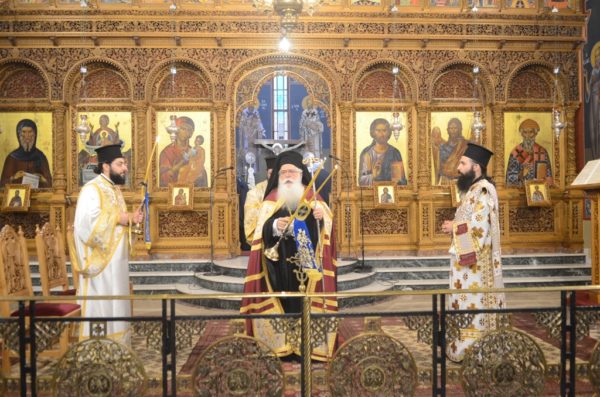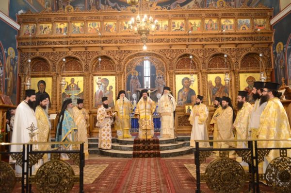 Στην Ακολουθία του Όρθρου χοροστάτησε ο Μητροπολίτης Δημητριάδος και Αλμυρού κ. Ιγνάτιος, ο οποίος προεξήρχε στην Τρισαρχιερατική Θεία Λειτουργία, συλλειτουργούντων του Μητροπολίτου Μεσογαίας και Λαυρεωτικής κ. Νικολάου και του Μητροπολίτου Αιτωλίας και Ακαρνανίας κ. Δαμασκηνού.