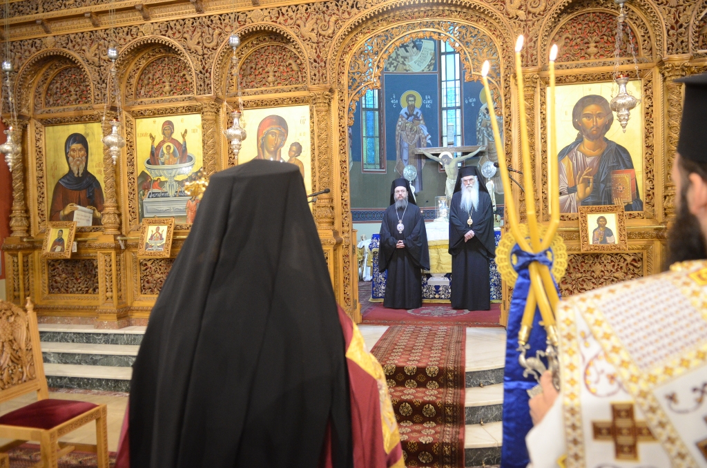 Στην Ακολουθία του Όρθρου χοροστάτησε ο Μητροπολίτης Δημητριάδος και Αλμυρού κ. Ιγνάτιος, ο οποίος προεξήρχε στην Τρισαρχιερατική Θεία Λειτουργία, συλλειτουργούντων του Μητροπολίτου Μεσογαίας και Λαυρεωτικής κ. Νικολάου και του Μητροπολίτου Αιτωλίας και Ακαρνανίας κ. Δαμασκηνού.