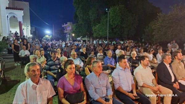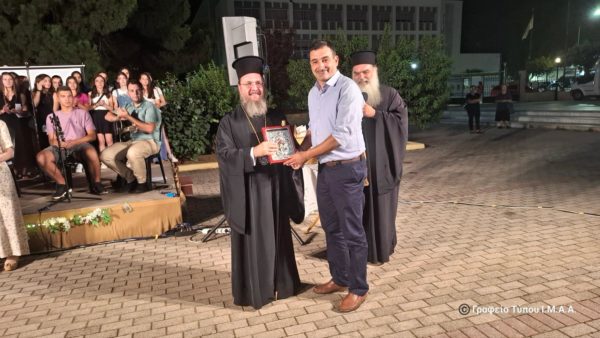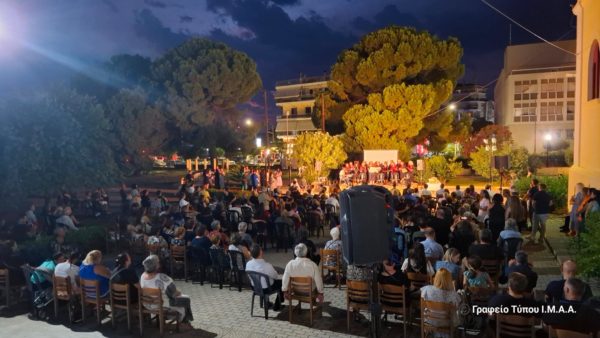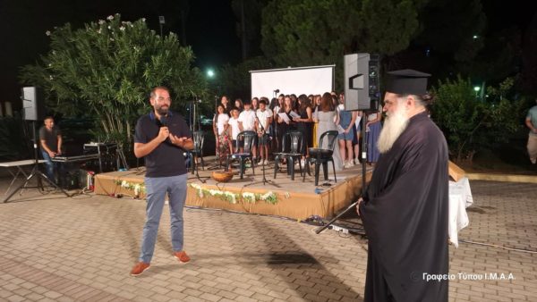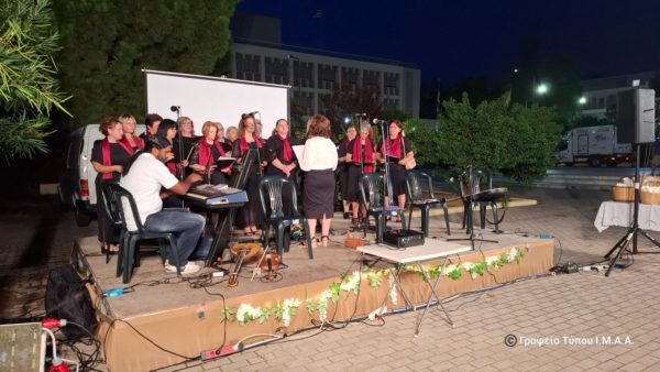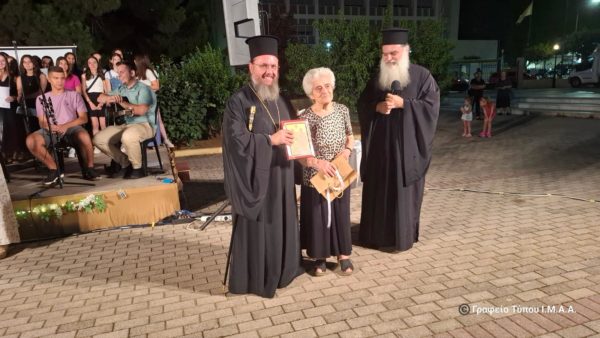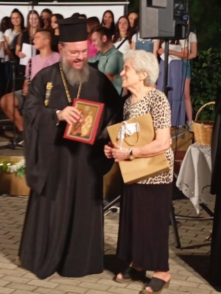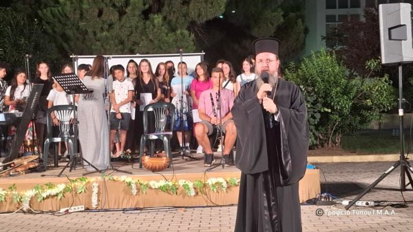 Πλήθος κόσμου κατέκλυσε από νωρίς τον αύλειο χώρο του Ναού για να παρακολουθήσει την εκδήλωση, που περιλάμβανε ύμνους και τραγούδια απ’ τη χορωδία γυναικών και τη χορωδία του κατηχητικού του Ιερού Ναού Αγίου Δημητρίου.