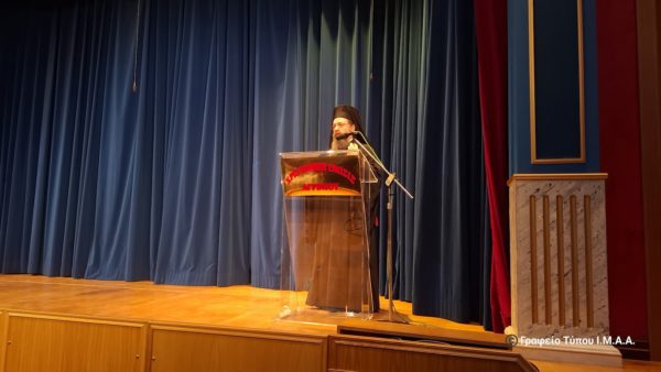 «Με ιδιαίτερη χαρά αποδέχτηκα την πρόσκληση του Διοικητικού Συμβουλίου της Χριστιανικής Ενώσεως Αγρινίου, για να παραστώ στην καθιερωμένη επετειακή εκδήλωση για την Εθνική Εορτή της 28ης Οκτωβρίου 1940, αλλά και να τελέσω την ακολουθία του Αγιασμού για την έναρξη των ιεραποστολικών και κατηχητικών δράσεων. Είμαι σήμερα εδώ, για να ευλογήσω την έναρξη των ιεραποστολικών δράσεων της Χριστιανικής Ενώσεως Αγρινίου και όλους εσάς, τους λαϊκούς αδελφούς μας, που και φέτος θα επιδοθείτε στον ιερό αγώνα της διδασκαλίας του Ιερού Ευαγγελίου και της χριστιανικής αλήθειας.