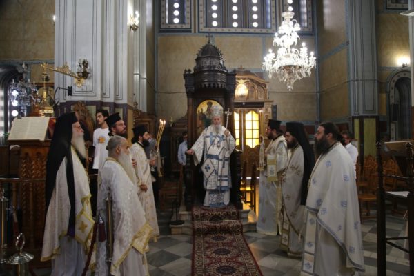 Στην Θεία Λειτουργία συμμετείχαν ο πρωτοσύγκελλος αρχιμ. Επιφάνιος Καραγεώργος, ο ιεροκήρυξ αρχιμ. Μακάριος Αντωνόπουλος, οι ιερείς του Ναού πρωτοπρ. Κωνσταντίνος Δημητρίου και πρωτοπρ. Χρήστος Γιαννακάς και οι διάκονοι π. Στέφανος Καππές, π. Αμβρόσιος Καλλιάφας και π. Νικόλαος Τσεπίσης.