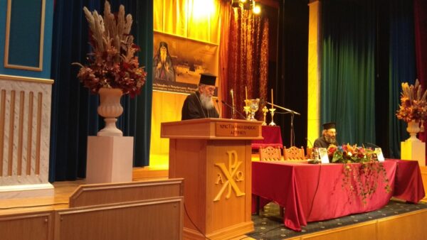 Ακολούθως ο Πρωτοσύγκελλος της Ι. Μητροπόλεως αρχιμανδρίτης π. Επιφάνιος Καραγεώργος καλοσώρισε τους συμμετέχοντες στο Συνέδριο, αναφερώμενος γενικά στις Ιερές Μονές ως τόπους ασκήσεως και θυσίας του ολοκληρωτικά αφιερωμένου μοναχού, αλλά και στην πορεία του κοινοβιακού μοναχισμού όπου «ο μοναχός με το καθημερινό μαρτύριο της συνειδήσεως, δίνει σάρκα και αίμα για να λάβει Πνεύμα».