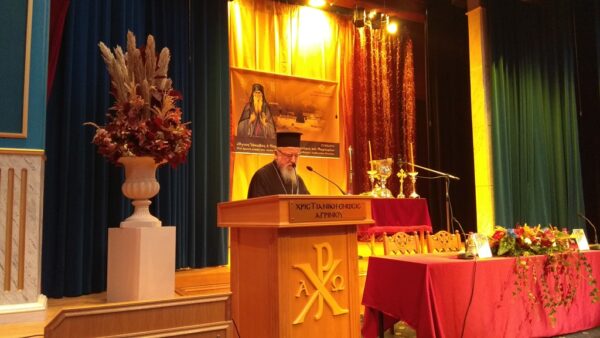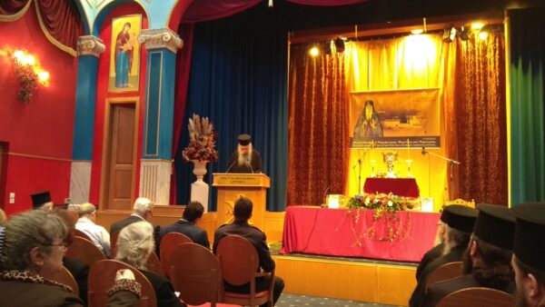 Ακολούθως ο Πρωτοσύγκελλος της Ι. Μητροπόλεως αρχιμανδρίτης π. Επιφάνιος Καραγεώργος καλοσώρισε τους συμμετέχοντες στο Συνέδριο, αναφερώμενος γενικά στις Ιερές Μονές ως τόπους ασκήσεως και θυσίας του ολοκληρωτικά αφιερωμένου μοναχού, αλλά και στην πορεία του κοινοβιακού μοναχισμού όπου «ο μοναχός με το καθημερινό μαρτύριο της συνειδήσεως, δίνει σάρκα και αίμα για να λάβει Πνεύμα».