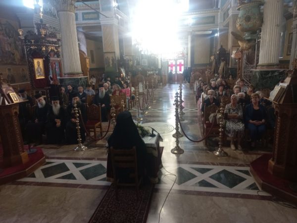 Ολοκληρώνοντας, ανέφερε ότι όλοι οι πιστοί γονατίζουμε στην Εικόνα της για να αναφέρουμε την θλίψη και τις αγωνίες μας στην Υπερένδοξη του Θεού Μητέρα και των αγίων αγγέλων αγιωτέρα. Η Παναγία μας είναι για όλους εμάς η σκάλα και η γέφυρα, είναι η ευλογημένη ανάμεσα στις γυναίκες, που δύο χιλιάδες χρόνια παρηγορεί αμέτρητους πονεμένους. Είναι η κορυφή και η τελείωση και το δικό μας πρότυπο της αγιότητος.