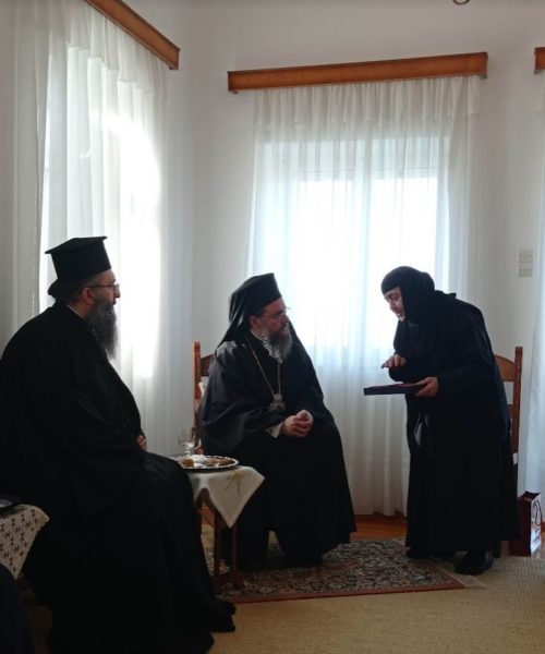 Ο Σεβασμιώτατος ευχαρίστησε για την υποδοχή και εξέφρασε τη χαρά του, γιατί επισκέφθηκε ένα ακόμα Μοναστήρι της Ιεράς Μητροπόλεως αφιερωμένο στην Κυρία Θεοτόκο. Αναφέρθηκε στις μοναχικές αρετές που οφείλουν να καλλιεργούν οι μοναχοί και οι μοναχές, όπως η αγάπη, η υπακοή και η ακτημοσύνη. Επίσης υπογράμμισε, ότι μέσα στην Εκκλησία υπάρχει μια τάξη που θα πρέπει όλοι να ακολουθούμε.