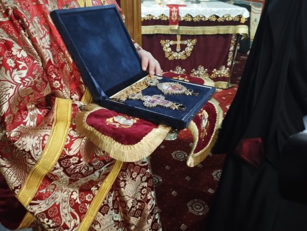 Σε ανάμνηση της επισκέψεως και της εορτής ο Σεβασμιώτατος προσέφερε στον Θεοφιλέστατο τα σταυρεγκόλπια του Μακαριστού Μητροπολίτου Αιτωλίας και Ακαρνανίας Κοσμά που φορούσε κατά την ιστορική ημέρα της Ενθρονίσεώς του ως Μητροπολίτης Αιτωλίας και Ακαρνανίας.