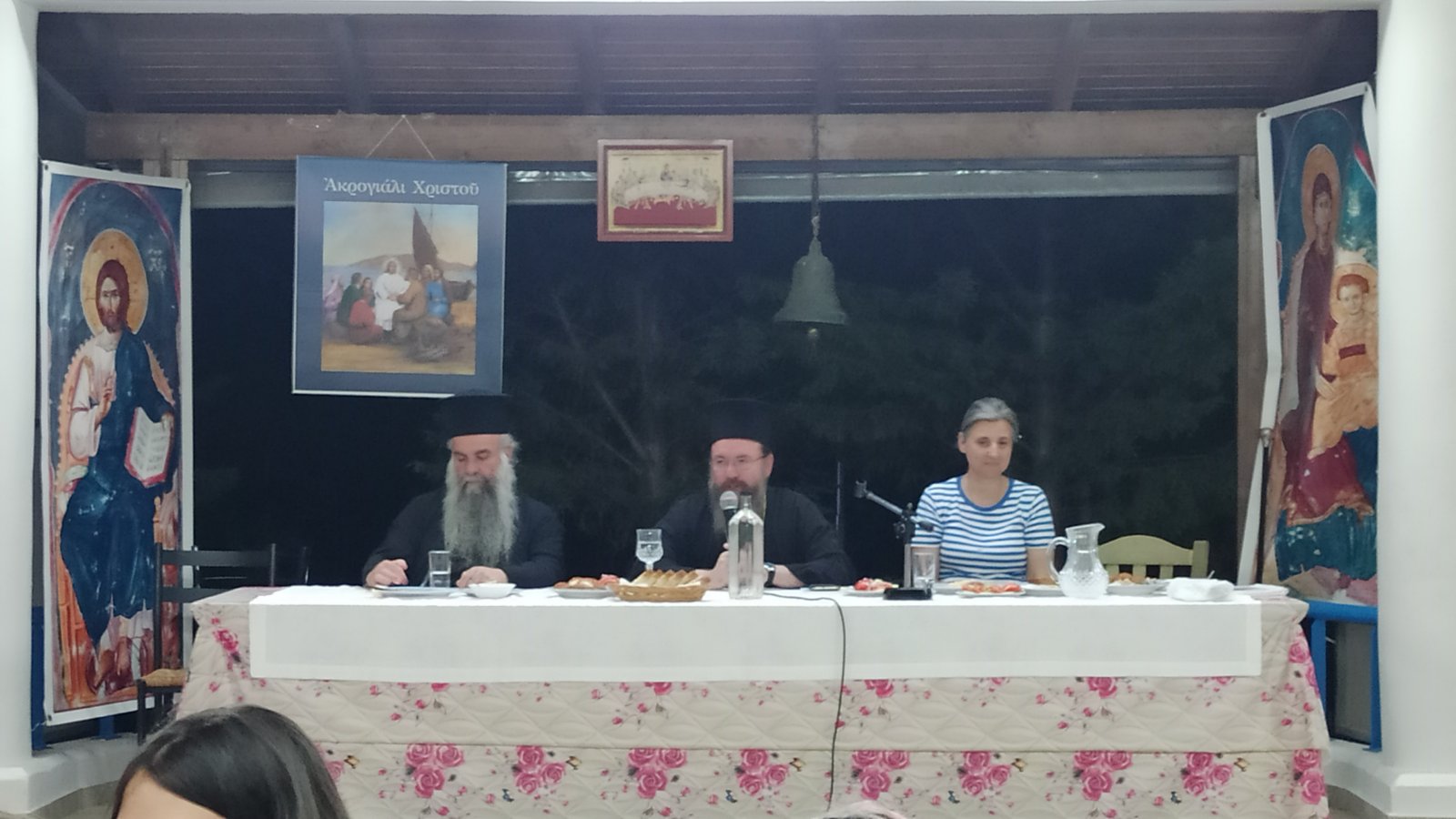 Στην συνέχεια ευλόγησε το δείπνο και μοίρασε σε όλες σταυρουδάκια και ευλογίες που έφερε από τα Ιεροσόλυμα και ευχήθηκε να περάσουν μια καλή, όμορφη και εποικοδομητική κατασκηνωτική περίοδο.