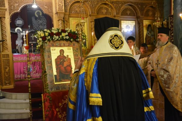 Στην ακολουθία χοροστάτησε ο Μητροπολίτης Αιτωλίας και Ακαρνανίας κ. Δαμασκηνός, ο οποίος έψαλλε τους Οίκους ενώπιον της εικόνας της Θεοτόκου, συμπαραστατούμενος από τον πρωτοπρ. Δημήτριο Πατσιαλό, Προϊστάμενο του Ναού και τους διακόνους π. Στέφανο Καππέ και π. Αμβρόσιο Καλλιάφα. Τους ύμνους της Ακολουθίας απέδωσαν ο Πρωτοψάλτης κ. Κωνσταντίνος Μπορμπότσιαλος και ο Λαμπαδάριος κ. Κωνσταντίνος Καντάνης.