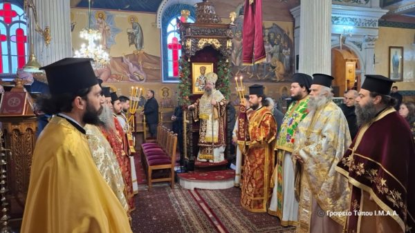 26/12/2024 26/12/2024 Στον ιστορικό Ιερό Ναό της Αγίας Παρασκευής, στην Ιερά Πόλη του Μεσολογγίου χοροστάτησε στην Ακολουθία του Όρθρου και προεξήρχε στην πανηγυρική Αρχιερατική Θεία Λειτουργία, ο Σεβασμιώτατος Μητροπολίτης Αιτωλίας και Ακαρνανίας κ. Δαμασκηνός, την δεύτερη ημέρα των Χριστουγέννων, Πέμπτη 26 Δεκεμβρίου 2024, εορτή της Συνάξεως της Υπεραγίας Θεοτόκου. Με τον Σεβασμιώτατο συλλειτούργησαν οι κληρικοί της Ιεράς...