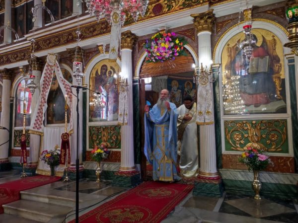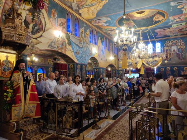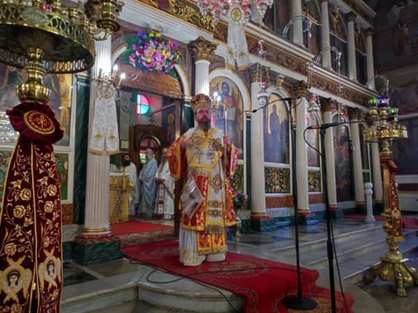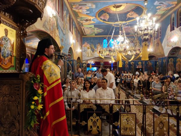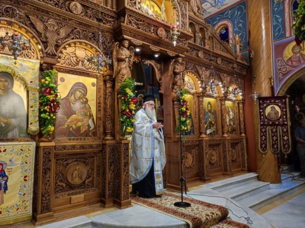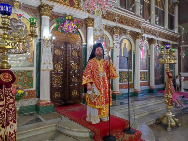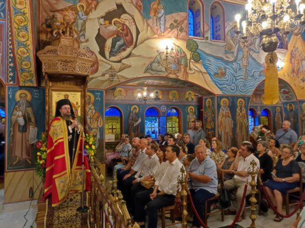 Κηρύσσοντας τον θείο λόγο ανέφερε τα εξής: «Με την προσευχή και την σκέψη μας στραμμένες στις πυρόπληκτες περιοχές της πατρίδος μας, που εδώ και δέκα ημέρες δοκιμάζονται από την πύρινη λαίλαπα, αλλά και με την προσευχή μας στραμμένη στις δύο οικογένειες των πιλότων του πυροσβεστικού αεροσκάφους, που συνετρίβη στην Κάρυστο, την ώρα του καθήκοντος και βρήκαν τραγικό θάνατο, σκορπίζοντας θλίψη, οδύνη και πόνο ανείπωτο στις οικογένειές τους και σε όλους εμάς, εορτάζουμε την εορτή της Αγίας ενδόξου Οσιοπαρθενομάρτυρος Παρασκευής της Αθληφόρου».