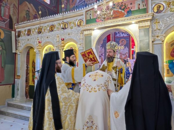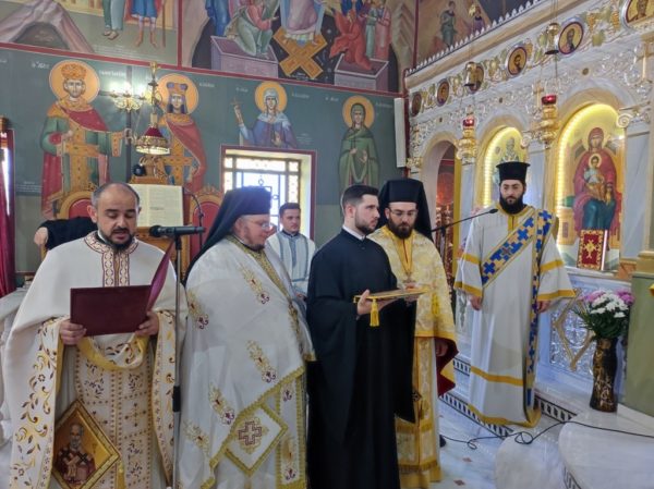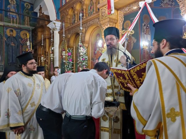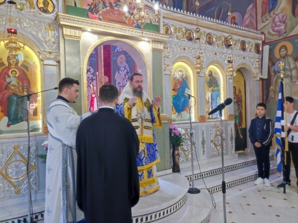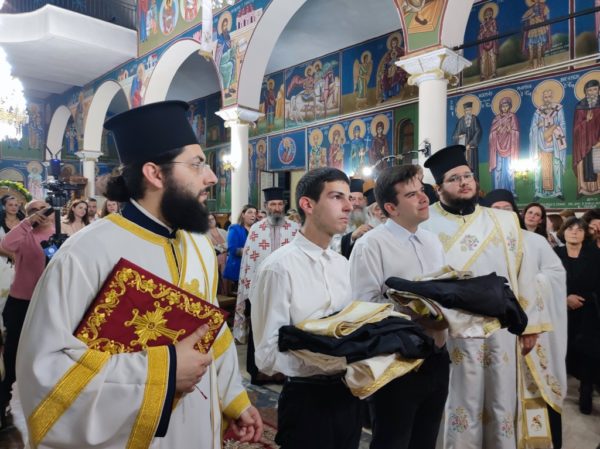 Επίσης ο Σεβασμιώτατος χειροθέτησε δύο νέους αναγνώστες, τους μαθητές Λυκείου Ηλία Ροϊδη και Κωνσταντίνο Στασινό, στους οποίους ευχήθηκε να προοδεύουν στα μαθήματά τους, να αναδεικνύονται πρότυπα για τους συμμαθητές τους και να αξιωθούν να εισέλθουν στις τάξεις του Ιερού Κλήρου, αν και εφόσον δεχθούν μέσα τους την κλίση του Θεού.