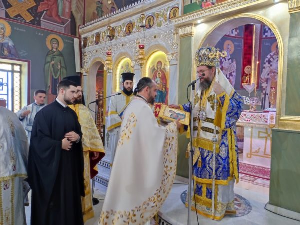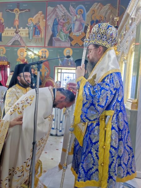 Ο Σεβασμιώτατος τον συνεχάρη για το έργο του, για την ανακαίνιση και τον εξωραϊσμό του Ιερού Ναού, τον οποίο με μεράκι και ζήλο επιμελήθηκε και του απένειμε το οφφίκιο του Πρωτοπρεσβυτέρου, ευχόμενος να συνεχίσει με τον ίδιο ζήλο την διακονία του.