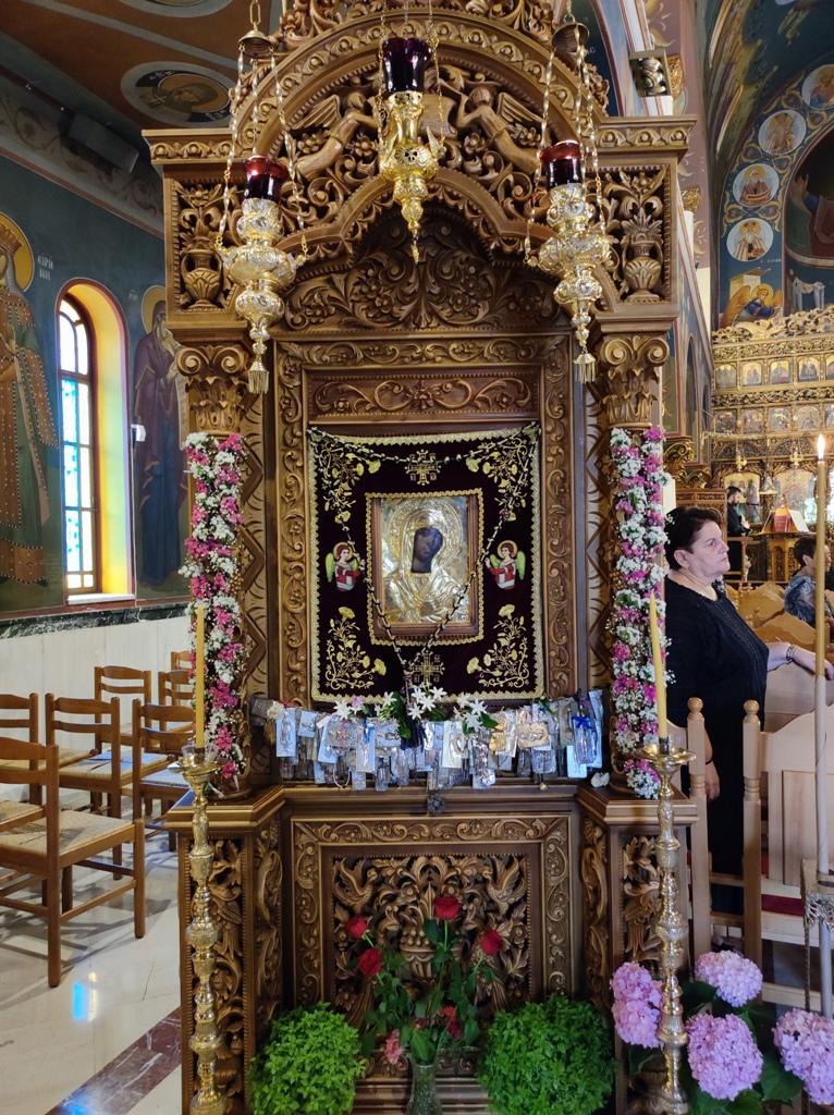Στον Ιερό Ναό φυλάσσεται η θαυματουργή εικόνα της Υπεραγίας Θεοτόκου που εορτάζει πανηγυρικά σήμερα. Η Ιερά Εικόνα, κατά την τοπική παράδοση, είναι ένα από τα τρία δώρα του Αυτοκράτορα Αγγέλου Κομνηνού, τον 13ο αιώνα, στο Αιτωλικό και συγκεντρώνει την ευλάβεια των κατοίκων της ευρύτερης περιοχής, που μαρτυρούν τα πάρα πολλά θαύματα της Παναγίας.