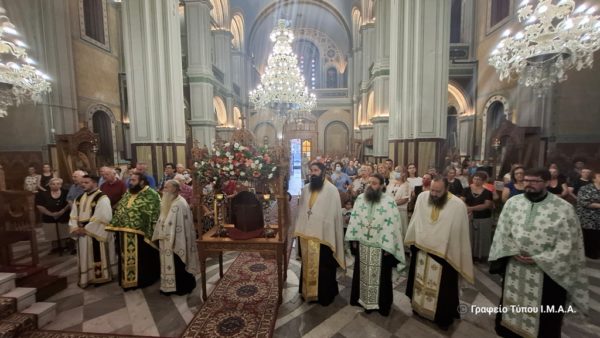 Μετά την πανηγυρική υποδοχή ακολούθησε ο Αρχιερατικός Εσπερινός, χοροστατούντος του Σεβασμιωτάτου Μητροπολίτη Αιτωλίας και Ακαρνανίας κ. Δαμασκηνού, με τη συμμετοχή των Κληρικών της Αρχιερατικής Περιφέρειας Μεσολογγίου και πλήθους πιστών Χριστιανών της Ιεράς Πόλεως. Τον θείο λόγο κήρυξε στους πιστούς ο Σεβασμιώτατος Μητροπολίτης Αιτωλίας και Ακαρνανίας κ. Δαμασκηνός.