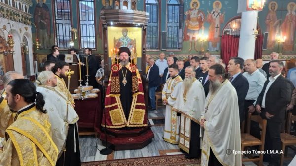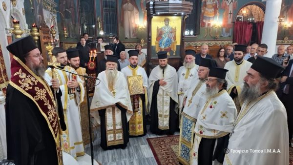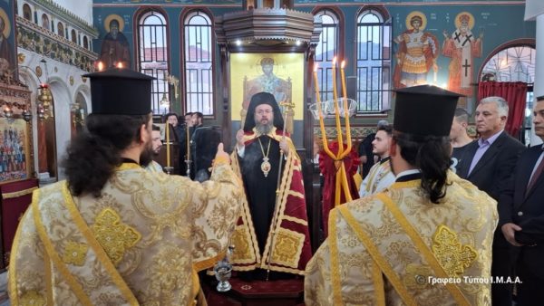 Στον πανηγυρίζοντα ομώνυμο Ιερό Ενοριακό Ναό τελέσθηκε το απόγευμα της Πέμπτης, 17 Οκτωβρίου 2024, η ακολουθία του Αρχιερατικού Εσπερινού, χοροστατούντος του Σεβασμιωτάτου Μητροπολίτου Αιτωλίας και Ακαρνανίας κ. Δαμασκηνού. Συμμετείχε το σύνολο των Κληρικών της Αρχιερατικής Περιφέρειας Μακρυνείας, με επικεφαλής τον Αρχιερατικό Επίτροπο, Αρχιμ. Σιλουανό Ψιλιά.