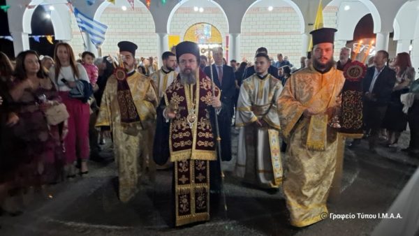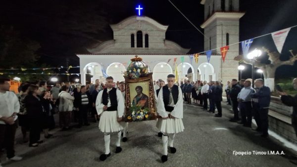 Ακολούθησε λιτάνευση της ιεράς Εικόνας του Αγίου στους δρόμους της Ενορίας, με τη συμμετοχή της Φιλαρμονικής του Δήμου Αγρινίου και των μελών των πολιτιστικών συλλόγων της τοπικής κοινότητος.