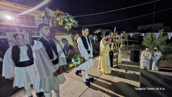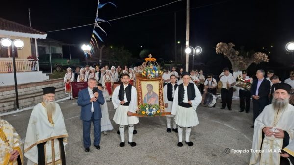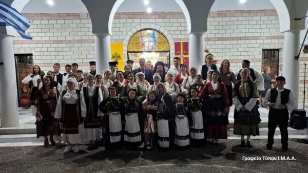Μετά το πέρας της Ιεράς Λιτανείας ακολούθησε στον προαύλιο χώρο του Ναού εορταστική εκδήλωση με παραδοσιακούς χορούς που παρουσίασαν οι πολιτιστικοί σύλλογοι της περιοχής.
