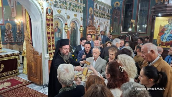 Κατά την απόλυση της Θείας Λειτουργίας ο Σεβασμιώτατος ευχαρίστησε τον π. Ιωάννη για τον θείο κήρυγμα, τους χορούς των ιεροψαλτών για την απόδοση των ύμνων της εορτής, καθώς και το Εκκλησιαστικό Συμβούλιο και τους κατοίκους της Ενορίας για την προετοιμασία και την οργάνωση της ιεράς πανηγύρεως.