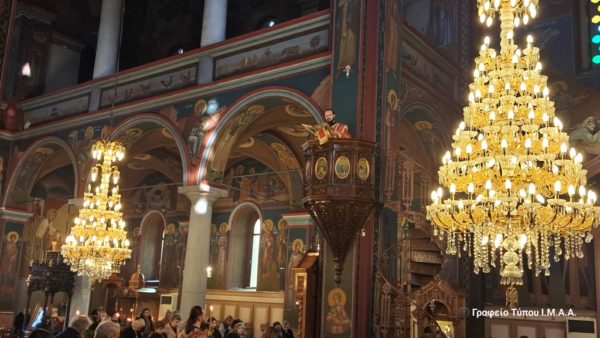 Κηρύσσοντας τον θείο λόγο ο Σεβασμιώτατος συνέχισε την σειρά των κυριακάτικων κηρυγμάτων του που είναι αφιερωμένα στο Μυστήριο της Θείας Ευχαριστίας και ανέλυσε τις δύο ευχές των πιστών που προηγούνται του χερουβικού ύμνου.