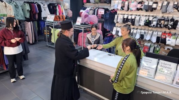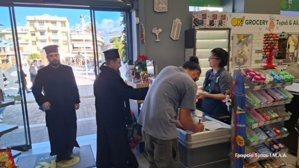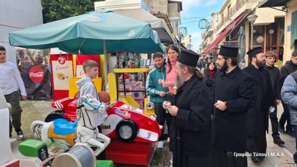 Μετά την Θεία Λειτουργία ο Μητροπολίτης κ. Δαμασκηνός, συνοδευόμενος από τα στελέχη των κατασκηνωτικών περιόδων αγοριών Γυμνασίου και Λυκείου της Ιεράς Μητροπόλεως, μαζί με τον Αρχηγό των περιόδων αυτών, Αρχιμανδρίτη Βασίλειο Αγγελάκη, επισκέφθηκαν το εμπορικό κέντρο της Ιεράς Πόλεως.