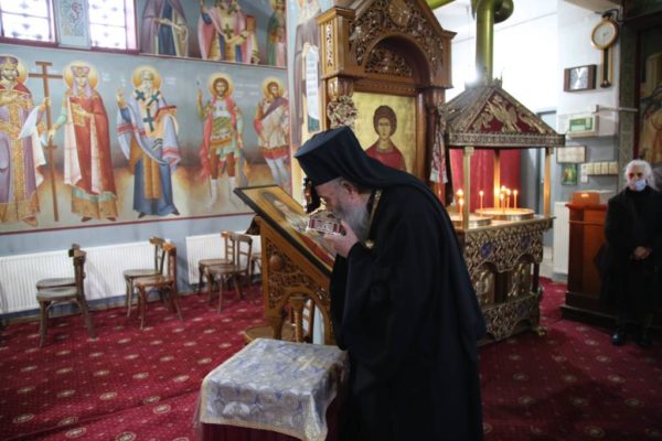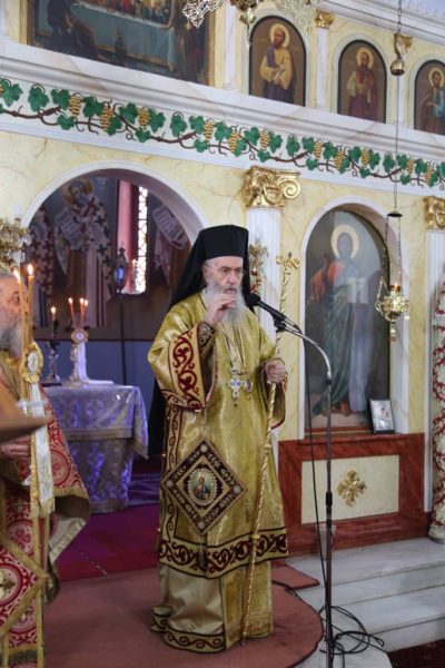 Κατά την απόλυση της Θείας Λειτουργίας ο Σεβασμιώτατος αναφέρθηκε στην οικογένεια του αγίου Γέροντά του, λέγοντας ότι στο χωριό αυτό υπήρχε μια αγία ρίζα, η οικογένεια του παπά Θανάση που μεγάλωσε τα παιδιά του και τα εγγόνια του μέσα στην παράδοση της ορθοδόξου Εκκλησίας. Κορμός και κλαδιά ήταν οι γονείς του και καρποί ευκλεείς ήταν τα παιδιά μεταξύ των οποίων ο άγιος Καλλίνικος. Προέτρεψε τους πιστούς να συνεχίζουν αυτή την ευλογημένη παράδοση. Να κρατήσουν αυτές τις παραδόσεις που έδωσαν στην Εκκλησία δύο αρχιερείς, ιερέα και έναν τόσο μεγάλο άγιο.