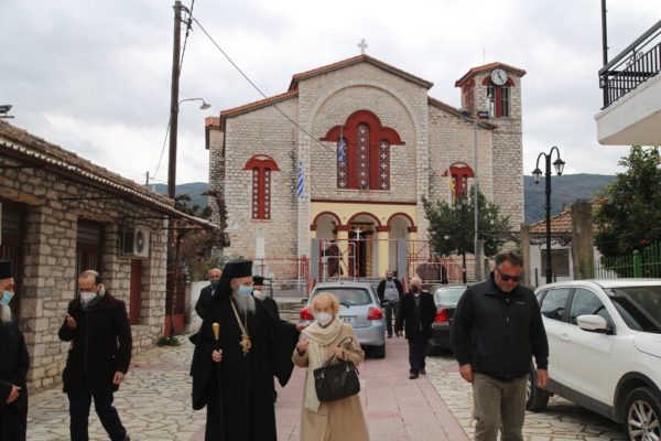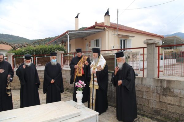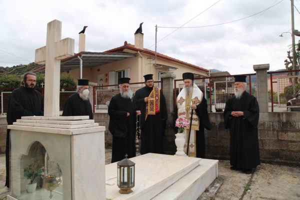 Μετά την απόλυση και την διανομή του αντιδώρου ο Μητροπολίτης Ναυπάκτου τέλεσε τρισάγιο για τον Μητροπολίτη Διδυμοτείχου Κωνσταντίνο, τον π. Ιωάννη Πούλο και για όλους τους κεκοιμημένους συγγενείς του αγίου Καλλινίκου και έπειτα επισκέφθηκε τον χώρο στον οποίο γεννήθηκε και μεγάλωσε και όπου ανοικοδομήθηκε νέα κατοικία.
