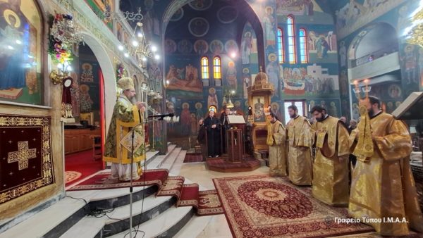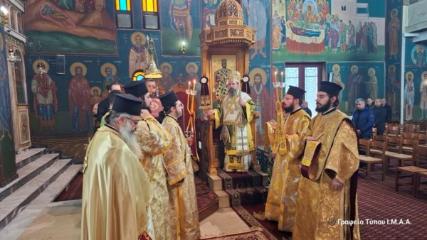 Μαζί του συλλειτούργησαν ο Προϊστάμενος του Ιερού Ναού Πρωτοπρεσβύτερος Βασίλειος Λιάκος, ο Αρχιδιάκονος Δημήτριος Λαγούδης και οι Διάκονοι Ιγνάτιος Γοργολίτσας, Σωκράτης Σχίζας και Βαρθολομαίος Κοσμάς.