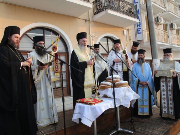 Η ιερά λιτανεία κατευθύνθηκε στο λιμάνι της πόλεως, όπου τελέσθηκε αρτοκλασία και μίλησε στους άρχοντες και τον λαό ο Σεβασμιώτατος Τοποτηρητής.