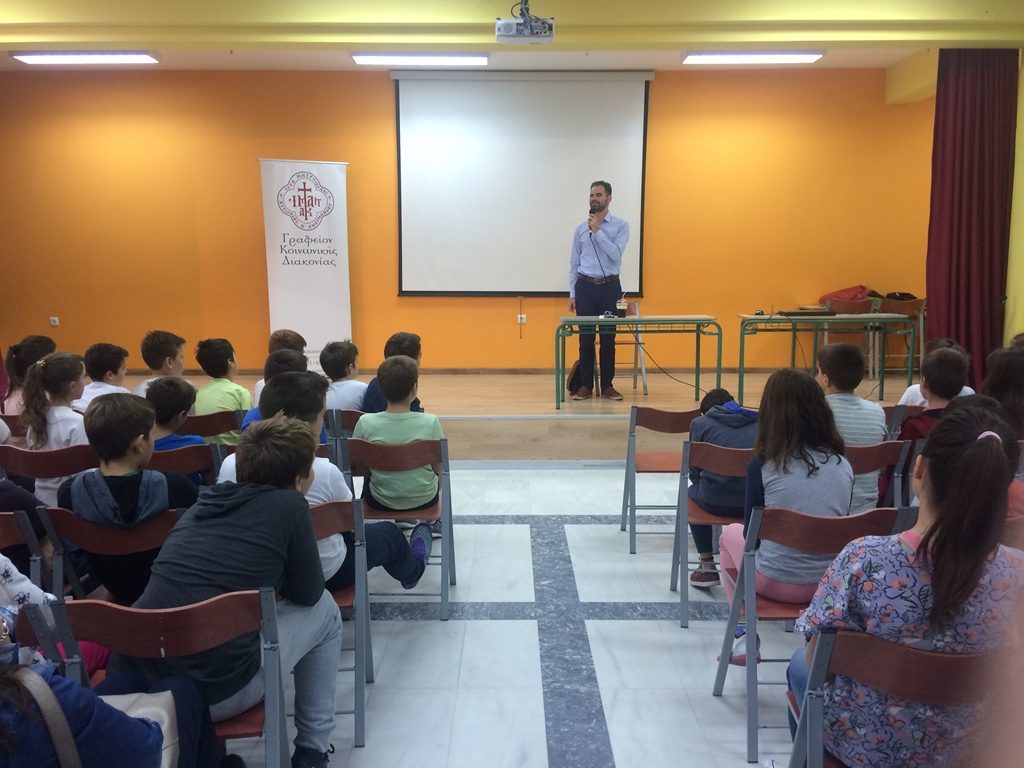 Ο Σεβασμιώτατος, μεταξύ άλλων, τόνισε στα παιδιά τα εξής: «Σας ευχαριστώ πολύ παιδιά, που βρίσκομαι ανάμεσά σας ώστε κι εγώ να συμμετέχω σ’ αυτή την πνευματική σας ωφέλεια. Θέλω να σας συγχαρώ πολύ, γιατί βλέπω ότι με πολύ ησυχία παρακολουθείτε και δέχεστε αυτή τη συνάντηση. Να σας συγχαρώ και να ευχηθώ καλή πρόοδο και πολύ φωτισμό σε όλους και σε όλες, για να ανεβείτε ψηλότερα στην κατάκτηση της γνώσης και τη επιστήμης.