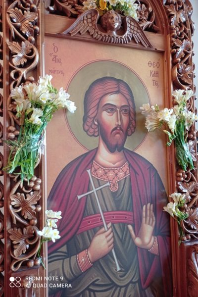 Σήμερα, εποχή κατά την οποία ο Χριστός ειρωνεύεται, χλευάζεται και πολεμείται, είναι καιρός να δυναμώσουμε την πίστη μας διδασκόμενοι από το παράδειγμα της ομολογίας του Αγίου Θεοκλήτου. Γιατί σήμερα που αφήσαμε την πίστη και λάβαμε τη λογική, είναι επιτακτική η ανάγκη του καθήκοντος!». ο Σεβασμιώτατος αναφέρθηκε και στον μακαριστό προκάτοχό του Θεόκλητο, που τιμούσε τον Άγιο αυτήν την ημέρα των ονομαστηρίων του.