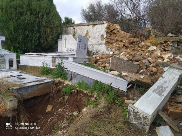 Η υποχώρηση του εδάφους και οι φθορές που έχουν προκληθεί στα μνήματα δημιουργούν εικόνες καταστροφής που σπάνια βλέπουμε να συμβαίνουν σε καιρό ειρήνης. Προσβάλλουν τη μνήμη των κεκοιμημένων αδελφών μας, των αγαπημένων μας προσώπων αλλά προσβάλλουν και εμάς τους ίδιους διότι αφήνουμε να επικρατεί μια τέτοια κατάσταση, η οποία θυμίζει βομβαρδισμένο τοπίο. Μήπως αδιαφορούμε ότι εκεί βρίσκονται τα νεκρά σώματα των συγγενών μας, τα οποία αξίζουν τιμής και φροντίδας, όπως κάθε ανθρώπινο σώμα, δημιούργημα του Θεού;