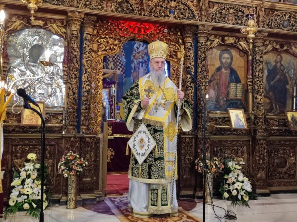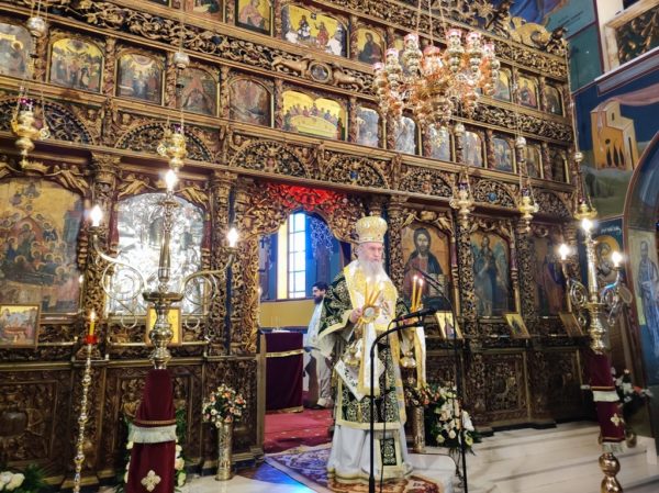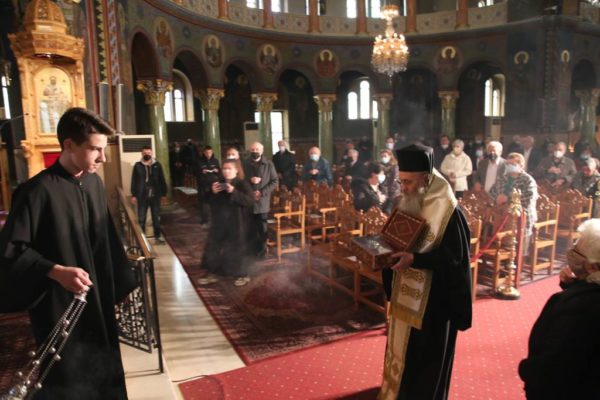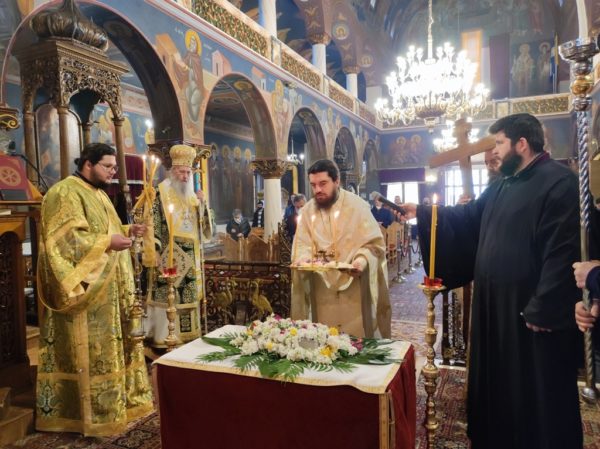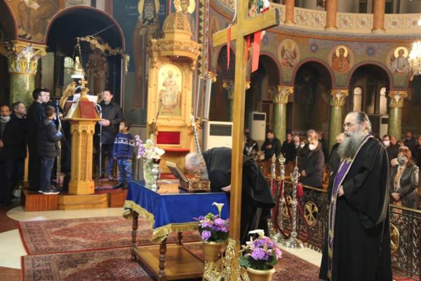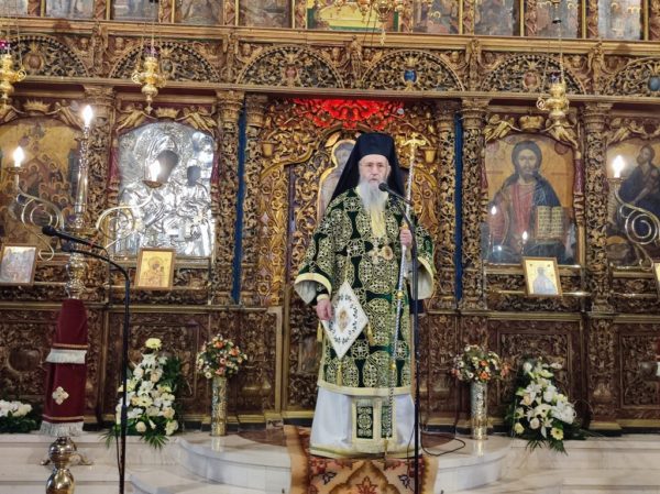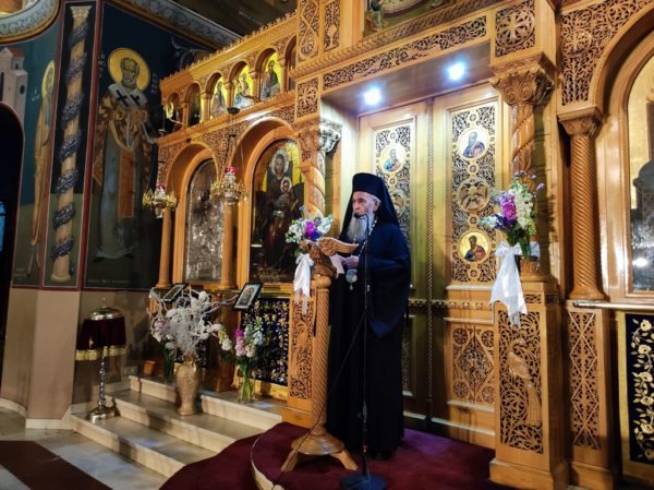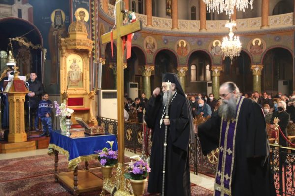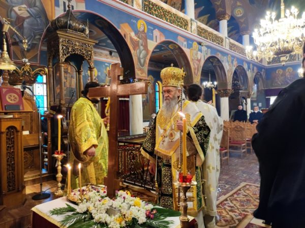 Κατά το κήρυγμά του, ο Σεβασμιώτατος κ. Ιερόθεος αναφέρθηκε στον Σταυρό του Χριστού τον οποίο προσκυνούμε την Γ’ Κυριακή των Νηστειών, στο μέσον της Αγίας και Μεγάλης Τεσσαρακοστής.
