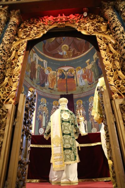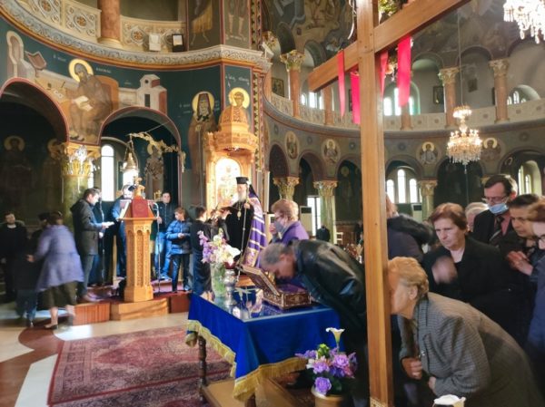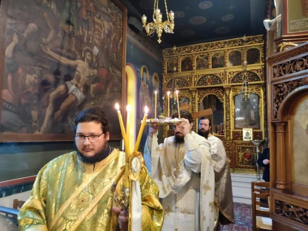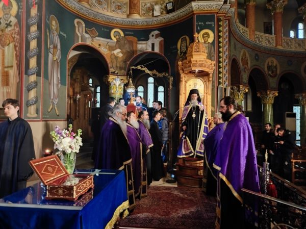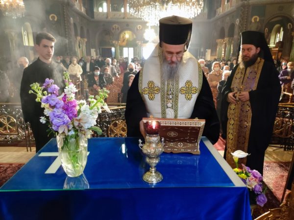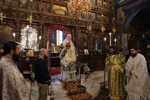 Κατά την έναρξη του Εσπερινού μετέφερε στον Ιερό Ναό την δεξιά χείρα του αγίου Καλλινίκου, Επισκόπου Εδέσσης, η οποία ετέθη στο μέσον του Ναού, δίπλα από τον Τίμιο Σταυρό, προς προσκύνηση, ενίσχυση και αγιασμό των πιστών.