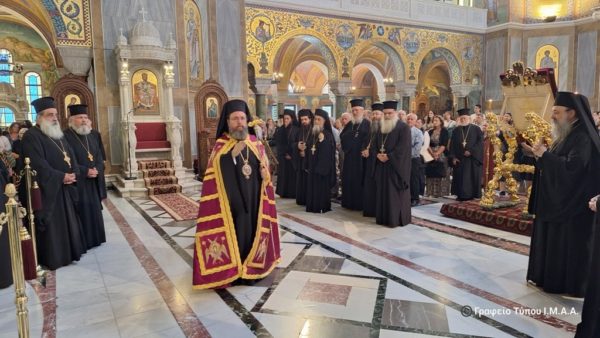 Τους Ιερείς και τους Προσκυνητές, επικεφαλής των οποίων ήταν ο Σεβασμιώτατος Μητροπολίτης Αιτωλίας και Ακαρνανίας κ. Δαμασκηνός υποδέχθηκε θερμά ο οικείος Ποιμενάρχης, Σεβασμιώτατος Μητροπολίτης Πατρών κ. Χρυσόστομος.