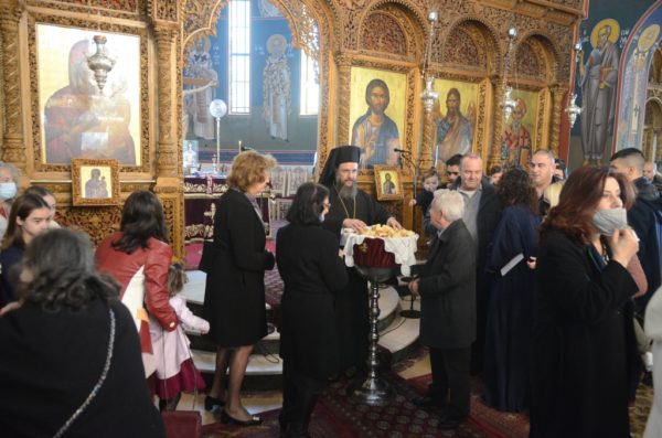 Πριν την απόλυση της Θείας Λειτουργίας ο π. Κωνσταντίνος ευχαρίστησε τον Σεβασμιώτατο για την παρουσία του στην Ενορία του Αγίου Δημητρίου αυτήν την τόσο μεγάλη Δεσποτική Εορτή και του προσέφερε μια εικόνα του Αγίου Ιωάννου του Βραχωρίτου, ο οποίος μαρτύρησε πλησίον του Ιερού Βήματος του Ναού.