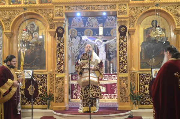 Πριν την απόλυση της Θείας Λειτουργίας ο π. Κωνσταντίνος ευχαρίστησε τον Σεβασμιώτατο για την παρουσία του στην Ενορία του Αγίου Δημητρίου αυτήν την τόσο μεγάλη Δεσποτική Εορτή και του προσέφερε μια εικόνα του Αγίου Ιωάννου του Βραχωρίτου, ο οποίος μαρτύρησε πλησίον του Ιερού Βήματος του Ναού.